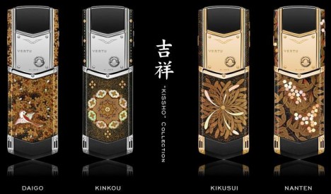 Vertu is to unveil its new Signature Kissho Collection , a range of devices released to mark the first anniversary of the brand’s flagship store opening in Tokyo, Japan.The new collection will feature handsets adorned with the ‘ maki-e ’ Japanese lacquer technique and designed by Japenese lacquerware artist Kazumi Murose .Daigu, Kinko, Kikusui and Nanten represent spring, summer, autumn and winter and each handset will be available for $215,000 (20 million yen).