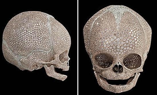 Damien Hirst, the British artist has used an infant’s skull to create his latest work “For Heaven’s Sake” . The metal skull art is cast in platinum and covered with more than 8,100 diamonds by the royal jewellers Bentley & Skinner. Hirst acquired the child’s skull from which he drew inspiration when he bought a 19th-century pathology collection and it’s believed to be that of a baby who died at the age of two weeks, The Daily Telegraph reports.