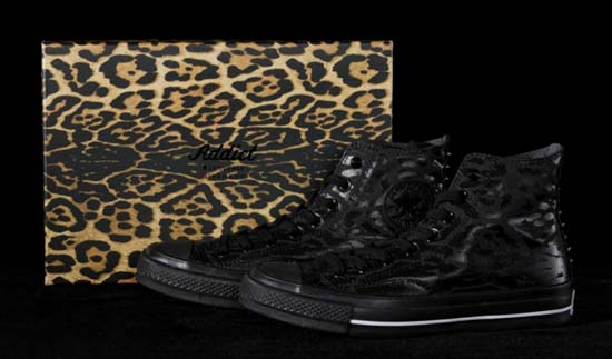 Givenchy’s creative director Riccardo Tisci is teaming up with Converse Japan for a limited edition Converse Addict All Star Hi sneaker. The entire sneaker is black, featuring a leopard pattern along the upper accented by spikes. The kicks are available exclusively in Japan for a price of JP ¥29,400, or US $347. The collaboration is set to launch on Wednesday, April 27th, at GIVENCHY retail locations in Japan.
