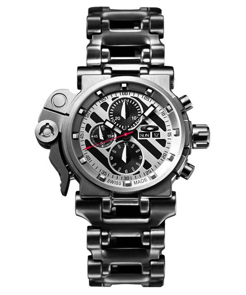 Oakley has just released this Full Metal Jacket timepiece, as part of Oakley’s high-end Elite line. The timepiece is made from impact-forged titanium with a Valjoux 7750 25-jewel automatic movement to power its various functions including day/date, time and chronograph. The case can be removed and replaced with a pocket watch body, included in your purchase. The Full Metal Jacket watch is priced at $8,995.