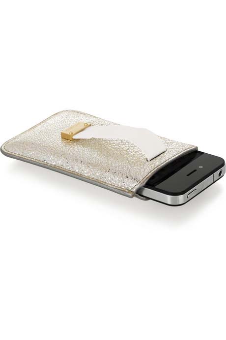 Jimmy Choo recently joined the endless list of brands to produce a case for the iPhone. The case is made from silver leather, gold-tipped white grosgrain tab to remove iPhone, fully lined. Comes in a designer pouch and box. You can get it here for $210.