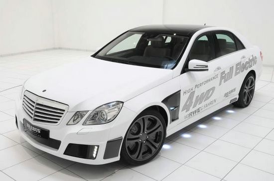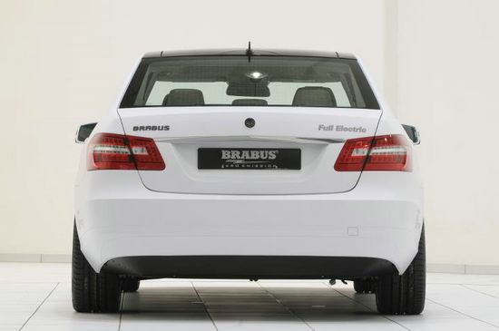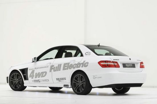 Based on Mercedes E-Class, Brabus Zero Emission, a business division of German tuner Brabus has developed a fully operational Brabus High Performance 4WD Full Electric concept car. The all-wheel-drive vehicle is equipped with an electro-hydraulic brake system that was custom developed for this type of drive layout.The power output of the four electric motors adds up to a peak output of 320 kW and a whopping peak torque of 33,200 Nm of Torque, a Top Speed of 220 km/h, 0–100 km/h in 6.9 seconds and 350 km Range. For charging on the road at any normal 220V AC outlet or on a 380V three-phase outlet the car is equipped with an integrated charger that recharges the 56-kWh lithium-ion battery pack fully in five hours. The car, will make its public debut at at the 2011 IAA Frankfurt Motor Show on Tuesday.