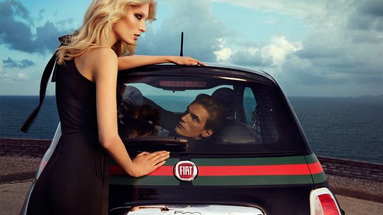 Italian automobile manufacturer Fiat continues its collaboration with luxury brand Gucci on the popular Fiat 500, unveiling a new ad campaign for Winter 2011. The campaign features models Melissa Tammerijn, Zuzanna Bijoch, and Anthon Wellsjo, showcasing the stylish fusion of automotive and fashion.