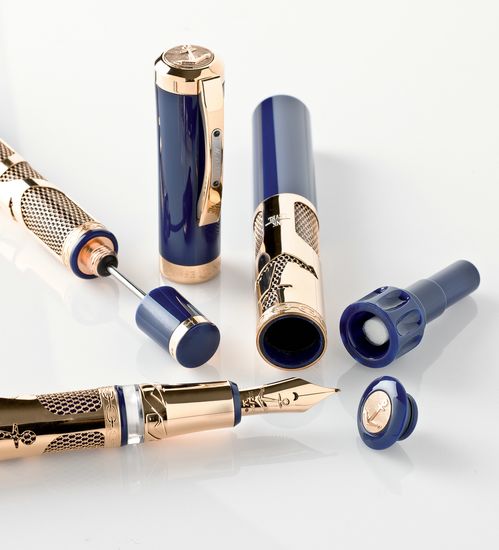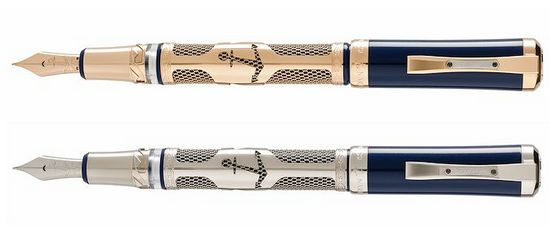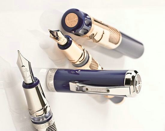 Swiss watch brand Ulysse Nardin has teamed up with instrument specialist Visconti to produce a fountain pen. Like always Ulysse Nardin’s thing, it comes with blue sea color , hewn from a block of the purest resin and the metal parts is made of 18-carat gold or 925 sterling silver. The brand name and gold purity mark are meticulously engraved by hand, while the clip, sculpted from a block of solid gold or silver, is inscribed with the pen’s serial number. The fountain pen features a bayonet closure system with safety mechanism, and another ingenious system that prevents ink spillage during flights; and comes with the travel inkwell so that you can refill your pen on the move.