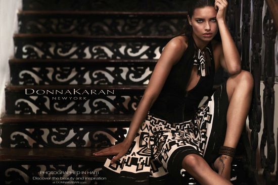 Brazilian beauty Adriana Lima stars in Donna Karan Spring 2012 ad Campaign. Photographed by Russell James in Haiti, Adriana smolders in tribal prints inspired by Haitian artist Philippe Dodard.
