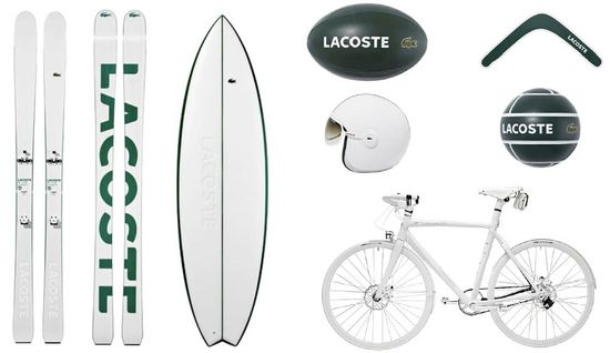 Each Lab piece is created in partnership with leading authorities in their respective fields: GPA Design executed the moto helmet in carbon, the boomerang is produced by 3B of thin birch plywood, LOOK realized the hi-tech urban performance bicycle, the soccer and rugby balls are engineered by MITRE Sports out of Tensile fabric with embroidered crocodile logos, the surfboard was shaped by J.P.Stark and engineered by NOTOX , while the skis are produced by BlackCrows. The newly branded Lacoste Lab will be available exclusively at Colette in Paris from the 9th of January 2012, and in Lacoste flagship stores worldwide from February 2012.