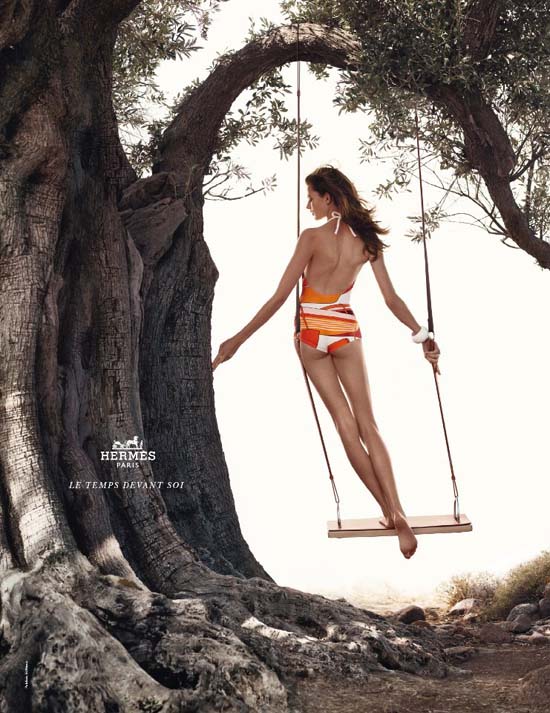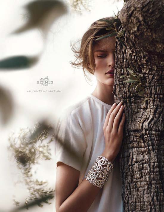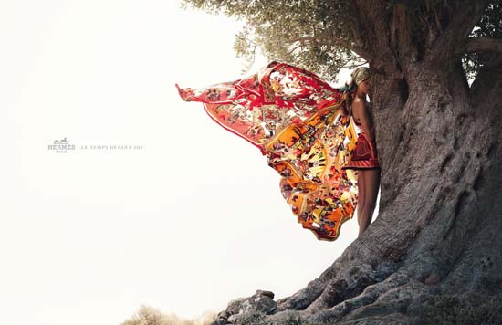 Le temps devant soi – Famous luxurious fashion house Hermès has unveiled their latest Spring Summer 2012 advertising campaign, fronted by model Bette Franke. Photographed by Nathaniel Goldberg the Dutch beauty looks absolutely gorgeous like a butterfly, with scarves behind her back flowing gracefully. View more of the campaign after the jump:
