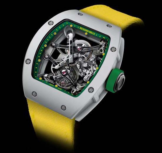 Richard Mille revealed a new athletic watch this week, a new ultra-light tourbillon with a yellow, green and black colour scheme, just like the Jamaican flag. Unfortunately Richard Mille is not providing any specifics at this time, in a release announced this week that, due to Olympic rules, it cannot announce “his” name until three days after the 2012 Games’ closing ceremony. Any guesses? Jamaican sprinter Yohan Blake, the current 100 metre World Champion was recently spotted wearing this very distinct watch while attending events in London. The brand says that its partnership with the sprinter will remain in place through 2013 while the brand develops a new calibre.