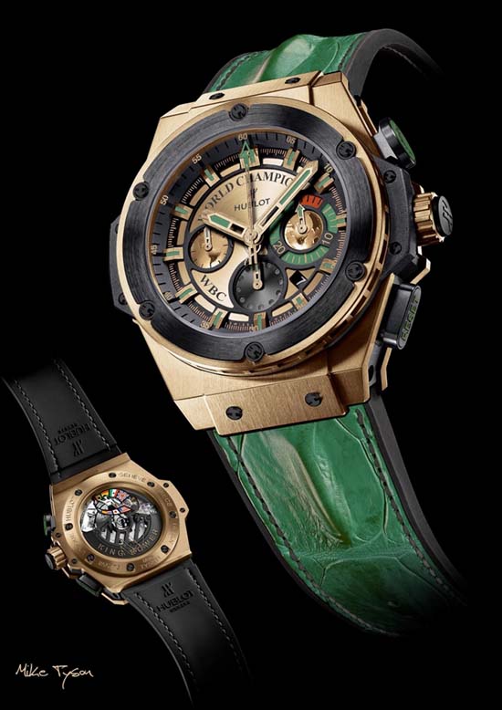 Hublot and World Boxing Council (WBC) teamed up for the ultimate knockout – In celebration of the inauguration of the WBC pension fund, Swiss luxury watch brand Hublot created 12 unique “Knockout” King Power WBC timepieces to honor 12 of boxing’s most admired champions, including Mike Tyson, Sugar Ray Leonard, Lennox Lewis, Jeff Fenech, Larry Holmes, Tommy Hearns, Roberto Duran, Azumah Nelson, Julio Cesar Chavez, Oscar De La Hoya and George Foreman. Hublot and WBC co-hosted an exciting evening, at the world famous Bellagio hotel in Las Vegas, Nevada.The 12 watches were auctioned off at the gala dinner raising a total of 1 million USD for the fund.