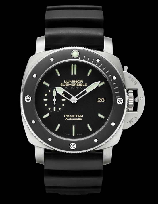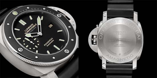 Officine Panerai presents the Luminor Submersible 1950 Amagnetic 3 Days Automatic Titanio (Ref. PAM389). The watch comes wia a titanium case measuring 47mm, using a Swiss automatic Panerai in-house caliber P9000 with 28 jewels, it has an AR-coated sapphire crystal and it is water resistant to 300 meters. The bezel is done in ceramic and titanium, which is completely new in Panerai watches. The PAM 389 will be officially released at the Salon International Haute Horlogerie in Geneva next January, priced at EUR8900 (approx. $11,500.)