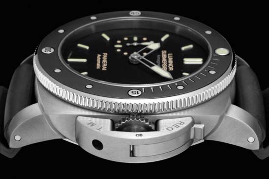 Strap: PANERAI personalised rubber strap and large-size brushed titanium buckle. Supplied with a second interchangeable strap, a tool to change the strap and a steel screwdriver.