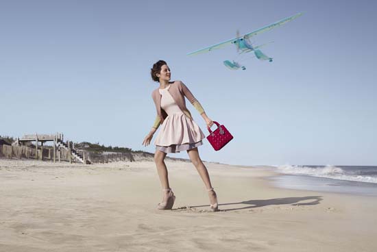 Marion Cotillard is back as the campaign face for Lady Dior handbags, looking chic and elegant as ever. Photographed by Jean-Baptiste Mondino, in Hamptons beach, the French beauty poses with red a handbag as she dons elegant ensembles from the Christian Dior Resort collection. One more image after the break.
