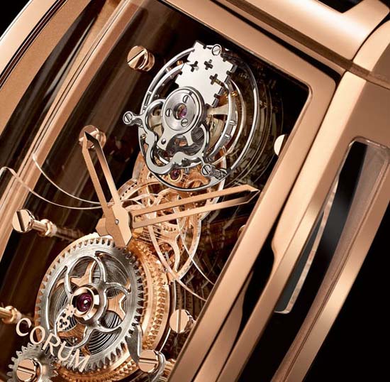 “Featuring 360° visibility, as if suspended weightless at the center of the case by a sapphire mainplate and bridges, Manufacture Corum Caliber CO100 is the true star of the new Golden Bridge Tourbillon Panoramique. This finely openworked translucent movement is equipped with a cantilevered or “flying” tourbillon: freed from an upper bridge, it appears to be levitating above the movement.”