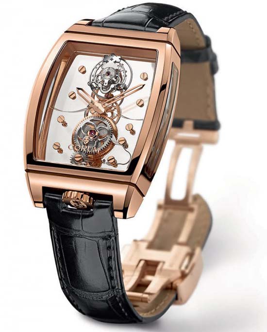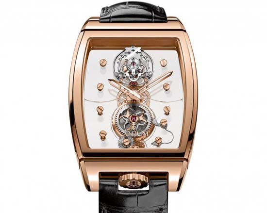 Corum has opted here for a so-called flying tourbillon, the movement beats at 21,600 vibrations per hour (3 Hz), and has a 90-hour power reserve. The entire device, adorned with a finely engraved Corum key, is held to the sapphire mainplate by its base alone. The watch is available in three variations issued in limited editions: ten with an 18kt red gold case; five with a baguette-set 18kt red gold case; and five with an 18kt red gold case set with round diamonds. No word on price yet.