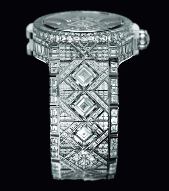 “It was a lengthy process to complete: 14 months of work for all the different disciplines combined, including 7 months’ work for 12 cutters, and the same for the 5 setters, with all the major specialists working on the piece full-time. A total of 1282 diamonds, more than 100 carats of baguette diamonds, a dazzling expression of the work of the best craftsmen in their field.This watch can be considered as a veritable collection of diamonds. A collection of tableaux. Each was individually chosen in relation to the others to create a harmonious whole.”