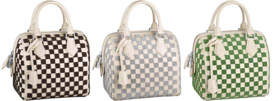 French luxury brand Louis Vuitton presents their Spring/Summer 2013 womenswear bag collection; the bags are as always, extremely well-crafted with their use of the iconic pattern in numerous new versions, both in terms of colors and in terms of materials. The new collection gives a fresh perspective and was inspired by the work of Daniel Buren, the artist behind the black and white striped columns in the Palais Royal gardens in Paris. Discover the Spring/Summer 2013 show bags below.