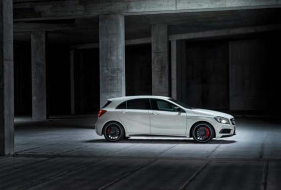 Combined fuel consumption: 7.1-6.9 l/100km ; CO2 emission: 165-161 g/km*. Set to go on sale across Europe in April, the new A45 AMG hatch will be unveiled at the Geneva Auto Salon in March 2013.