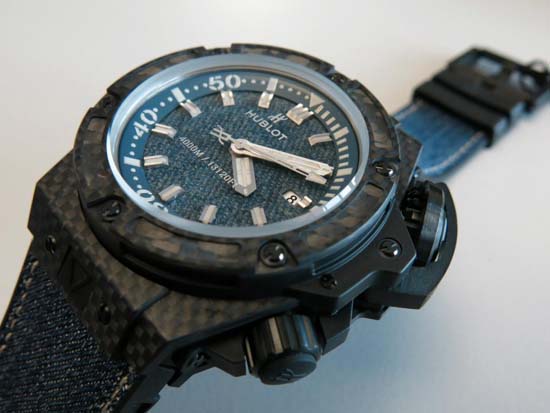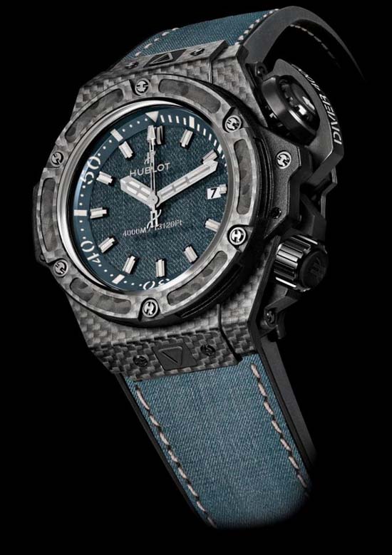 “Based on an idea by Tina Zegg and Carlo Cerlati, leading figures in luxury watchmaking based in Monaco, and backed by Hublot Chairman Jean-Claude Biver and the company’s CEO, Ricardo Guadalupe, this is the first ever ultra-technical diving watch to be adorned with denim. And we haven’t settled for any old denim! The dial and strap are made by an Italian denim manufacturer who supplies the world’s biggest luxury and fashion names.”