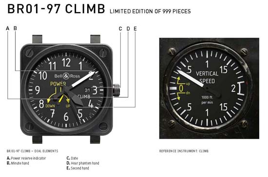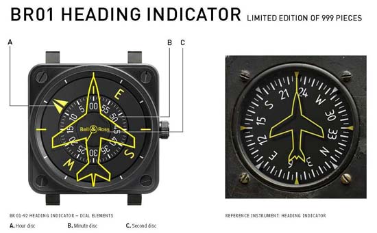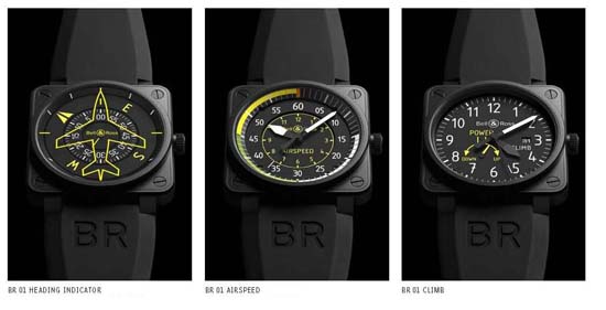 Inspired by the instrumentation of aircraft cockpits, Bell & Ross is enhancing the Aviation collection in 2013 with three new instruments based on the BR 01 (BR01) case. With this new trio – BR01 Heading Indicator, BR 01 Airspeed and BR01 Climb, Bell & Ross recreates the graphic style of navigation instruments as closely as possible.