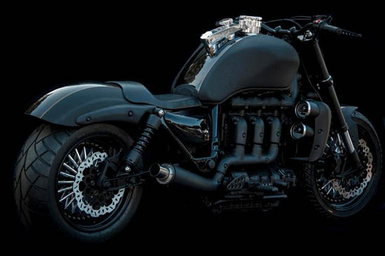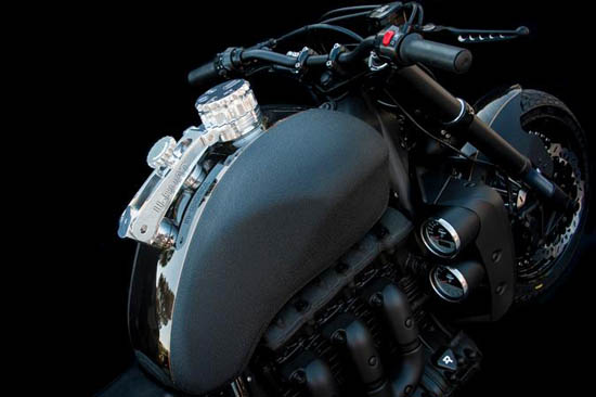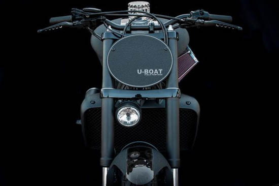 Italian watch manufacturer U-Boat unveiled a new custom motorcycle at Baselworld 2013. Always attracted by speed and motors, designer Italo Fontana teamed up with Dino Romano, famous Special Triumph customizer, deciding to combine their forces and undisputed talents into a new creation: the Venenum. This impressive “Made in Tuscany” ride is realized on Triumph Rocket III with three cilinders engine of 140 Cu.in displacement and 220 Nm torque, Venenum boasts 160 horse power , an wheelbase of 66,7 in. The total lenght is 97,6 in., with a rear tyre of 240 wide and 595 Lbs total weight. Limited edition of 100 units only , Venenum will be a one of a kind creation and highly handmade customizable. No word on price yet , we will update you on price and availability when this information becomes available.