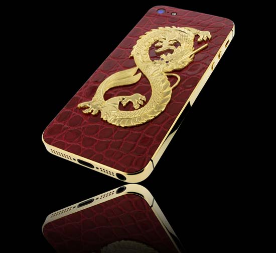 The second piece pays a tribute to the Chinese culture, and features a stunning hand engraved dragon inserted on red alligator leather; this special iPhone5 requires over 35hours of craftsmanship.