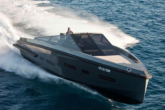 The Wally Powerboat 55 is the latest sports cruiser from Wally Yachts – Featuring a distinctive military look the yacht blends luxury and power, it comes equipped with four powerful Volvo Penta IPS600 engines each producing 435-horsepower and able to deliver a top speed of 40 knots. The deck has plenty of space for sunbathing and relaxing, sheltered by the oversized wraparound windscreen. For the interior decor Wally offers a custom service, the interior is available with two or three cabins, each with its own bathroom – the perfect retreat when the sun goes down.