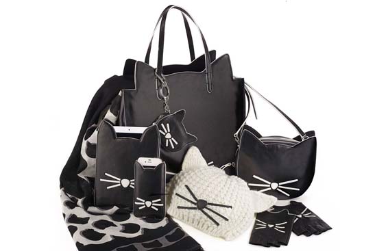 Meow! – Chanel creative director Karl Lagerfeld has launched a capsule collection of accessories inspired by his famous cat, Choupette. The collection includes a knit hat, iPad and iPhone cases, bags, keychains , fingerless gloves, and a scarf – all black and white, sporting an adorable cat motif. Unfortunately, the collection will be available exclusively only at Karl Lagerfeld stores in Paris, Berlin, Munich, Amsterdam, Beijing, Shanghai, and Antwerp starting November 12. Prices range from $61 to $465 , WWD reports.
