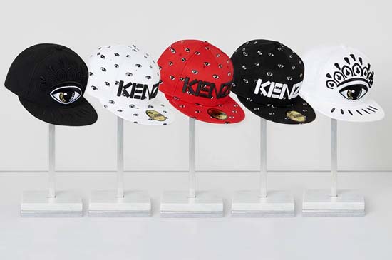 French fashion house Kenzo teamed up with sportswear brand New Era to create another exclusive cap collection.Inspired by the runway collection, the “Eye” graphics collection comes in two styles and three colorways, and completed with the distinctive Kenzo logo. The caps are now available in the official Kenzo online store for €40 EUR each (Approx. $55 USD). Hurry before it’s too late!