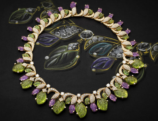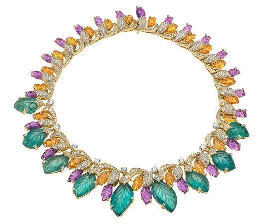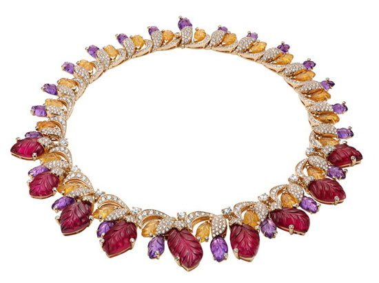 Italian jeweler Bulgari, which this year celebrates its 130th anniversary, honors the Four Seasons with a high jewelry mini-collection that represents the changing times of year. The first necklace Spring, a symbol of awakening, combines pink gold with mint tourmalines, peridots, and amethysts. The second necklace Summer, radiates the energetic heat of summer, featuring carved emeralds, mandarin garnets, amethysts and yellow gold. The third necklace Autumn, is referred to the brilliant hues of the changing leaves, and featuring pink gold with tourmalines, spessartite garnets and amethysts. And finally Winter, is cold.. frozen, made from platinum with nine round brilliant cut diamonds and and pavé-set diamonds.