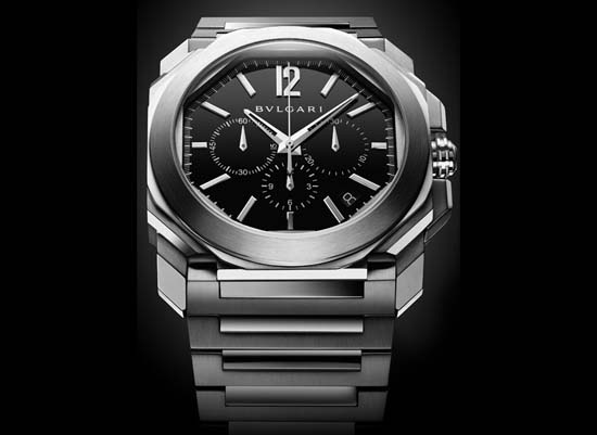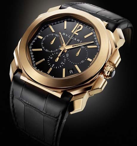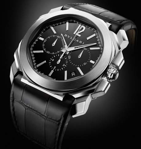 New for 2014 from Bulgari is this special piece Bulgari Octo Chronograph. The brand describe the new Octo Chronograph as the marriage of Italian genius with Swiss perfection. The octagonal case comes in 18kt rose gold or in stainless steel, measurring 41.5mm x 13mm; It has double sapphire crystals and it is water resistant to 50 meters. The watch is powered by the Swiss automatic Bulgari caliber BVL 328 ,base Zenith, with 31 jewels, 36,000 vph and a power reserve of 50 hours. The novelty comes on a steel bracelet or with a black alligator strap with 18kt rose gold or steel folding clasp. Did you know the original “Octo” was created by legendary Swiss watch designer Gerald Genta? So the legacy of Gerald Genta continues to live on … Nicely done Bulgari.