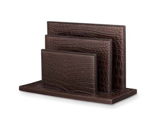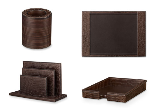 Parisian luxury label Hermès, well known for crafting high quality and exclusive items, has unveiled a set of luxurious desk accessories. Part of Hermes’ Surprise section the collection is crafted from matte alligator leather and includes a vertical folder, mail tray, desk blotter and a pencil holder. Available for purchase at Hermès online store, as individual items or as a set for $91,650.