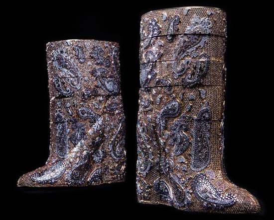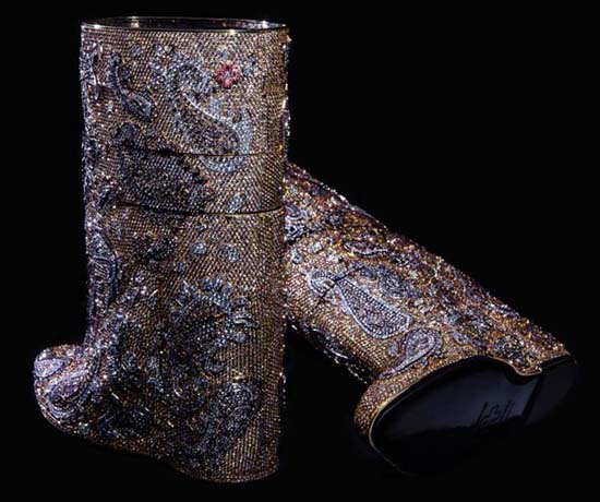 Belgian fashion label AF Vandevorst collaborated with Diarough/UNI-Design, an Antwerp-based diamond company, to create a pair of diamond ankle boots valued at $3,188,000 million. The calfskin boots, which come in size 39 (European) are studded with 38,883 natural fancy colored diamonds, 4,783 grams of gold and all the process from creation to manufacturing took over 30,000 hours. Unveiled during the Business Of Design Week in Hong Kong in December 2013, the diamond boots are now on display at the MAS Antwerp Diamond Pavilion until 23rd February. Let us know what you think of them in the comments below.