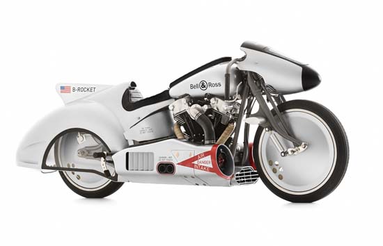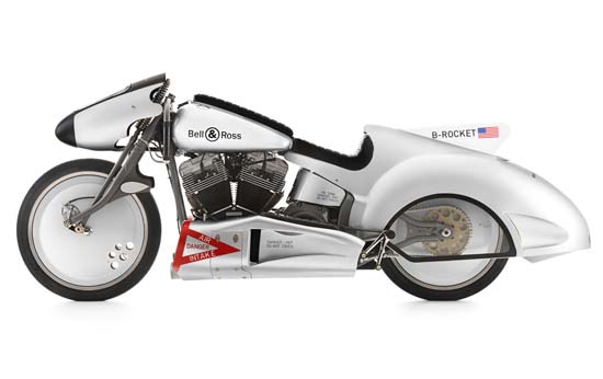 Luxury watchmaker Bell & Ross has commissioned once again Shaw Harley-Davidson to design a concept bike. Introduced at BaselWorld 2014, the fascinating B-Rocket is inspired by the speed bikes and experimental aviation of the 1960s.