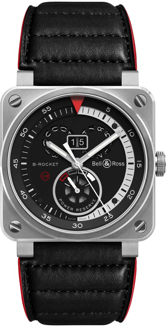 The second model, the BR03-97 B-Rocket, gets a 42mm satin-polished steel case and features hours, minutes and seconds indication together with a big date at 12 o’clock and power reserve indicator. Both watches include padded leather straps modelled on the seat of the B-Rocket bike. No word on price. TBA.