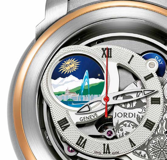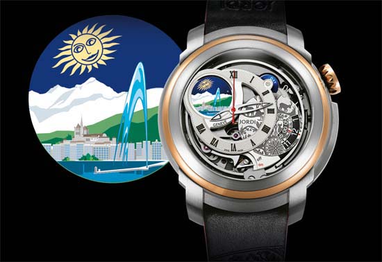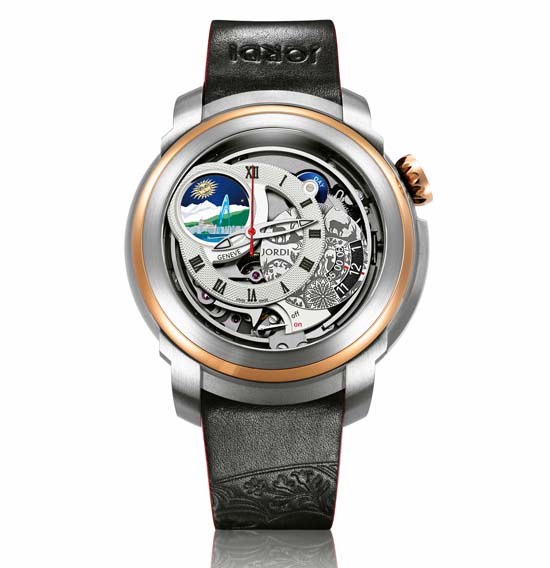 Jordi Swiss Icon introduced at this year’s Baselworld a new timepiece in their “Icons of the World” collection – “GENÈVE”. This collection pays homage, through beautiful designs and horological complications, to some of the world’s most legendary places. The case measures 46mm featuring a combination of titanium and 18K red gold, domed sapphire crystals, anti-reflective coating, and is water resistant to 100m. The awesome looking dial features at 10 o’clock the delightful representation of Geneva. Inside is the MJ 1948.10 calibre – Hand wound, double barrel, one reserved for the gong-striking mechanism, 28’800 vib/h, 45 jewels, 340 components, 72h power reserve. The novelty is completed by a brown or black leather strap with a folding clasp with a stainless steel black PVD folding clasp. Priced at CHF 53’800 (Approx. $60,903 USD ) current exchange rates.