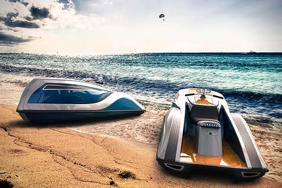 Meet the V8 Wet Rod, the new luxury personal watercraft for superyachts and mega yachts unveiled by Strand Craft. Created by the bespoke designer and visionary, Kurt Strand, Wet Rod will feature a 16-foot (4.9-m) carbon fiber/epoxy body powered by a massive 300-hp 5.7-liter V8 engine with a top speed of 65 mph (105 km/h).There are some custom options you should know about: wood and carbon, custom paint and sound systems, and a chrome dress up kit for the engine. The two-seat jet ski Wet Rod should be commercially available later this year, with prices starting at US$49,000. I bet James Bond is feeling really jealous right now.