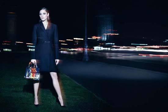 French actress Marion Cotillard continues her reign as the face of the Miss Lady Dior Handbags for the fall-winter 2014 campaign. Captured by Craig McDean on the Pont Alexandre III in Paris, Marion wows in looks from the label’s pre-fall collection, while carrying three new versions of the Lady Dior bag. See more previews of the ads below.
