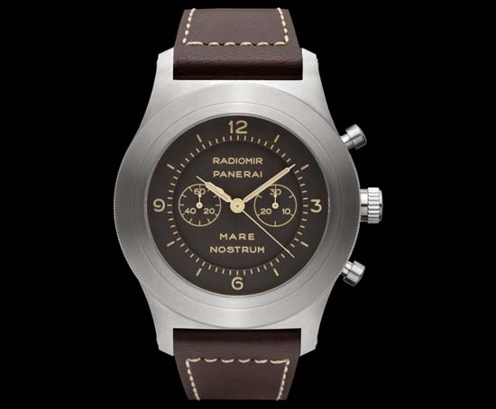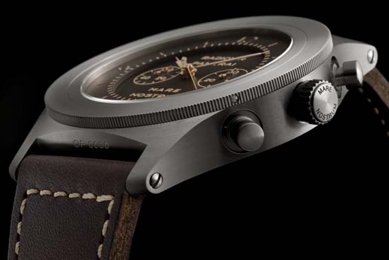 “In 1943 the Panerai family named the chronograph created for the deck officers of the Royal Italian Navy “Mare Nostrum”, as a tribute to the Mediterranean Sea “Mare Nostrum” (“Our sea”) where the Royal Italian Navy fleets accomplished their victorious missions during the Second World War. This name had already been used by Guido Panerai in 1924 for what was probably the first Panerai chronograph, but all traces of this first model have been lost. However a few prototypes of the 1943 chronograph still exist, and these have enabled the new watch to be reconstructed with great technical accuracy and similar aesthetic characteristics.” – the press release reads.