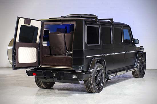 Toronto-based armoured vehicle specialist Inkas has just unveiled its latest bullet proof creation based on a Mercedes-Benz G63 AMG. The armored G63 AMG comes in matte black, and boasts electroluminescent bulletproof glass and an armored passenger compartment providing protection against 7.62mm, 308 Winchester FMJ ammunition. At the interior Inkas used the most luxurious materials available on the market including exotic leather and curved wood. Other spec highlights? Customized captain seats, a satellite TV system, a fridge, a bar, a speed-vault pistol holder, and most interior features are operated via an iPad mini using a computerized control system. Obviously such a highly customized vehicle comes with a high price, a cool $1,000,000 to be precise, but riding in this limo will literally make you feel like 007. Take a 360-degree virtual tour of the armored G-Class on the firm’s site.