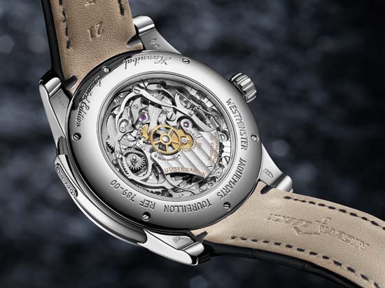 The timepiece is powered by a caliber UN-78 one-minute tourbillon, integrated and visible on the dial, with 36 jewels and a power reserve of approx. 70 hours.