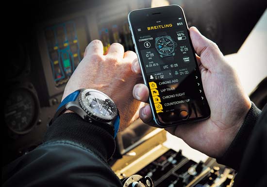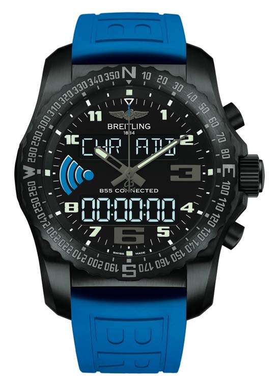 Swiss watchmaker Breitling just entered in the smartwatch game with its B55 Connected chronograph. Described as the “ultimate pilot’s instrument” B55 Connected boasts a wide range of innovative functions including an electronic tachometer, a countdown/countup system enabling a sequence of countdown and “long duration” timing operations, along with an eminently aviation-oriented “chrono flight” device that is useful in recording flight times while memorizing the take-off time, landing time and date. Housed in a titanium case with black carbon-based coating, the luxurious Swiss-made smartwatch B55 Connected connects to a Breitling mobile app via Bluetooth with your phone. No word on price yet. Pricing and availability for B55 Connected for sure will be announced next week at the Baselworld 2015. Watch the promotional video below for more info.