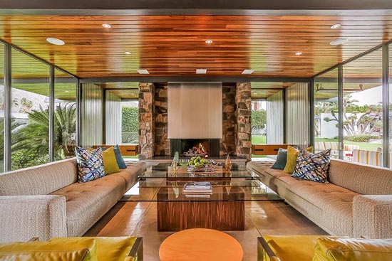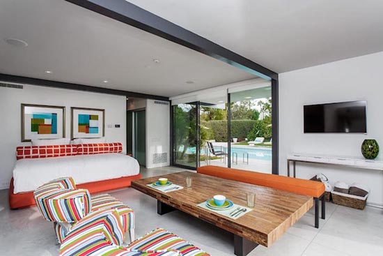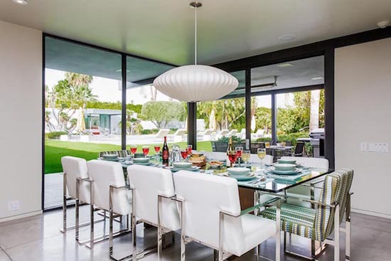 Attention, Leonardo DiCaprio fans! Wolf of Wall Street star is renting out his luxurious Palm Springs estate for $4,500 a night, with a two night minimum. Located in the Old Las Palmas neighborhood, the 7,022-square-foot modern masterpiece boasts six bedrooms, seven-and-a-half bathrooms, a pool, tennis courts, and the casita adjacent to the tennis court. The fancy residence was built by renowned architect Donald Wexler and was exclusively created for actress and singer Dinah Shore in 1964, and was remodeled before DiCaprio bought it. Have a look at the impressive home in the images below.