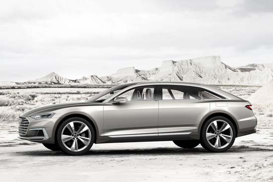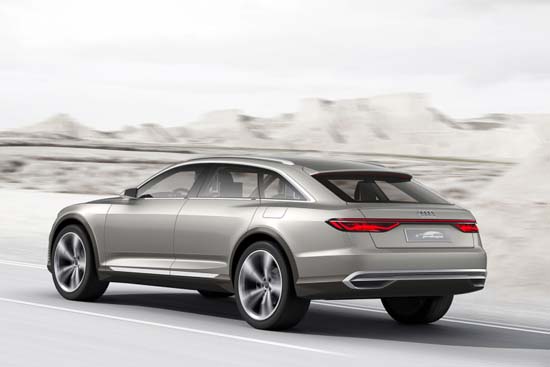 Audi revealed the Prologue Allroad Concept ahead of its 2015 Shanghai Motor Show debut. Under the hood sits a hybrid system that pairs a 4.0 TFSI V8 twin-turbo with an electric motor integrated into eight-speed automatic transmission, producing a total of 734 hp and a massive 663.8 lb-ft of torque. Audi claims 0-62mph in 3.5sec and just 56g/km of CO2. Other features include 22‑inch wheels, Matrix laser headlights, while inside it’s all angular yet elegant, swathed in dark blue, beige and brown. Until the official reveal, enjoy these images of the Audi Prologue Allroad Concept below.