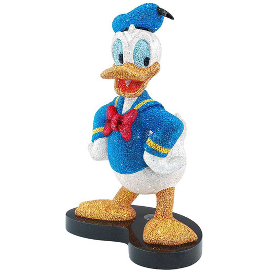 Swarovski has given a dazzling makeover to Walt Disney’s iconic character – Donald Duck, Limited Edition 2015. Measuring 4/8 x 4 15/16 x 4 5/16 inches the bejeweled duck stands on a black pedestal, sparkling with crystals in a variety of colors set in the exclusive Pointiage technique. Limited to only 150 pieces worldwide the iconic mascot is priced at $8,900 and only available in 2015.