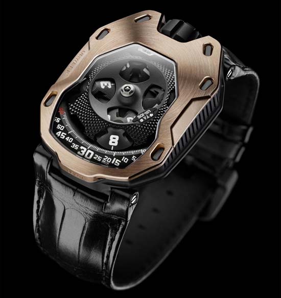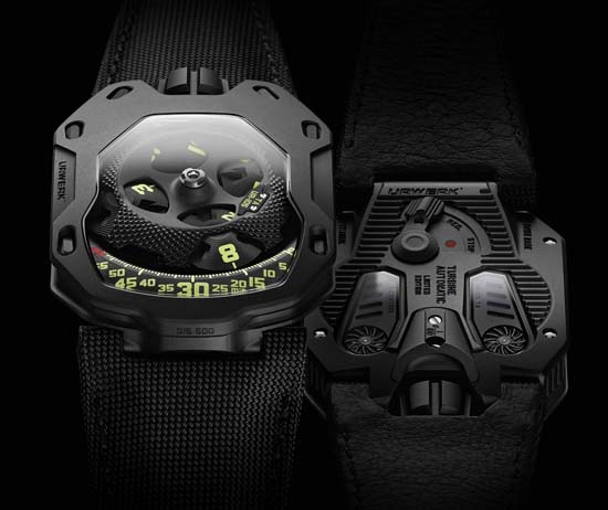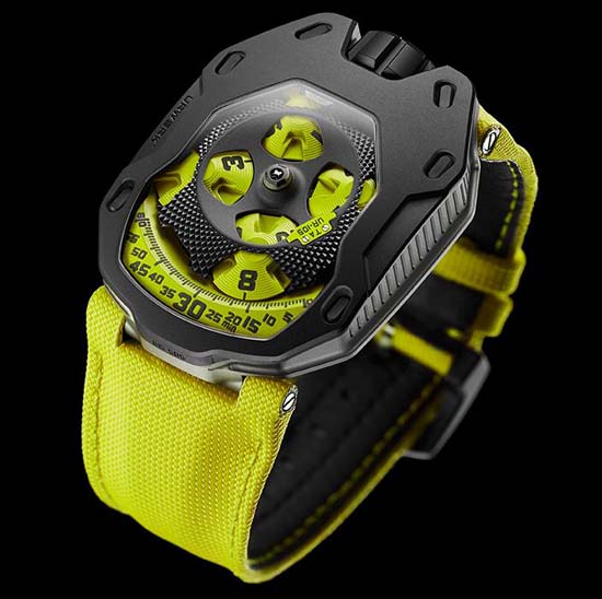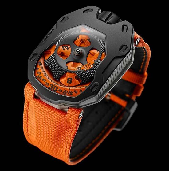 Urwerk UR-105 TA “Knight” as the Black Lemon or Black Orange is priced at 58,000 Swiss Francs (Approx. $60,933USD); the Urwerk UR-105 TA “All Black” is 64,000 Swiss Francs (Approx. $67,236USD) , and price for the Urwerk UR-105 TA in black titanium with an 18k red gold bezel is 66,000 Swiss Francs (Approx. 69,337USD).