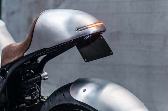 Other notable features include a bespoke sub frame, K&N filters, repositioned the foot-pegs, a hand-crafted alloy and suede cafe racer inspired seat. Check out the video below to see this magnificent ride in action.