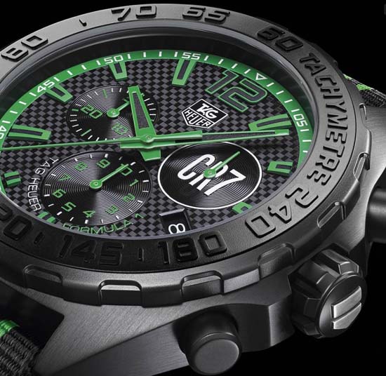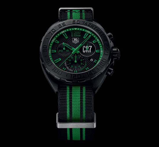 Swiss brand Tag Heuer has introduced a limited edition timepiece in tribute to three-time Ballon d’Or winner Cristiano Ronaldo. Based on the Formula 1 Chronograph, the timepiece features a 42mm Fine-brushed black titanium carbide coated steel case. Inside is the Ronda 5040D quartz caliber; the black textured dial comes with faceted green minute and hour hands with black luminescent markers. Completing the ensemble is a Black and green NATO strap. The CR7 Formula 1 watch is priced at CHF 1,450 in Switzerland ( Approx. $1,500 ) and will reach the market this July so you’d better start saving.
