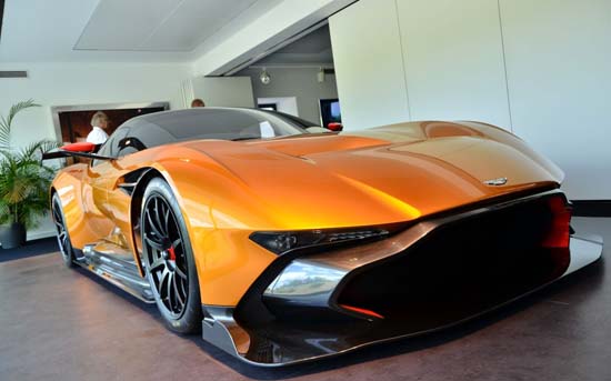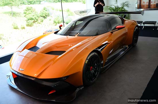 British luxury carmaker Aston Martin introduced its track-only Vulcan supercar finished in bright orange. The beast car, can be seen at the Nürburgring test center. The superb Vulcan packs a V12 7.0-liter naturally aspirated engine that provides no less than 800 bhp (596 kW) mated to a Xtrac six-speed sequential gearbox. As you would expect it needs less than 3 seconds to conquer the 0-60 mph (0-96 km/h) sprint and will top out at more than 200 mph (322 km/h). Priced at £1.8 million (about $2.8 million), Aston Martin Vulcan model will be limited to only 24 units.