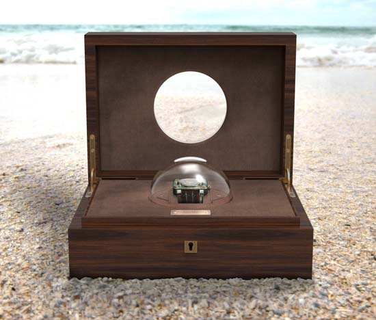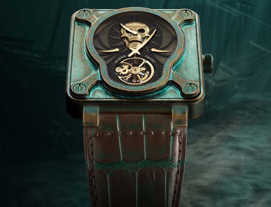 Parisian brand Bell & Ross has created for Only Watch 2015, a one-of-a-kind BR 01 Skull Bronze Tourbillon watch. Housed in 46 mm square case in aged bronze, the dial features a skull in hand-engraved solid gold; It is powered by the caliber BR-281, a mechanical movement with a tourbillon, regulator-style time indication, 5-day power reserve, and accuracy indicator functions. Presented in a wood chest, the Bell & Ross BR 01 Skull Bronze Tourbillon will be sold during the Only 2015 charity auction, with all funds raised benefiting research for Duchenne Muscular Dystrophy.
