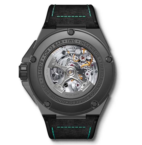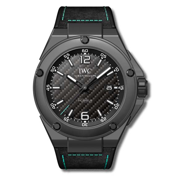IWC released their donation for the Only Watch auction taking place on November 7, 2015. The unique piece, Ingenieur Automatic Edition “Tribute to Nico Rosberg,” features a 46mm case made of solid boron carbide, one of the hardest and most scratch-resistant materials available. The timepiece is powered by an IWC caliber 80110 mechanical movement with a Pellaton automatic winding system and is fitted with a blackened rotor. Completing the ensemble is a unique rubber strap with Dinamica inlay accented with green quilted stitching, the same innovative microfiber used in the Mercedes Benz AMG GT interior. For more information on the Only Watch auction, please visit the Only Watch website.